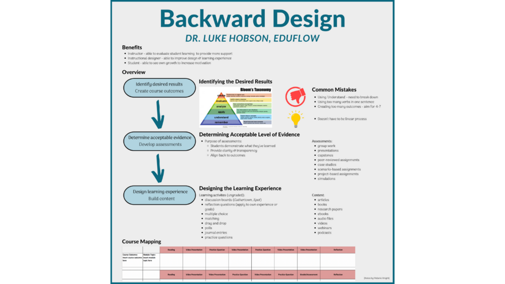 Visual summary about backward design. Large hi-resolution version to download and print.